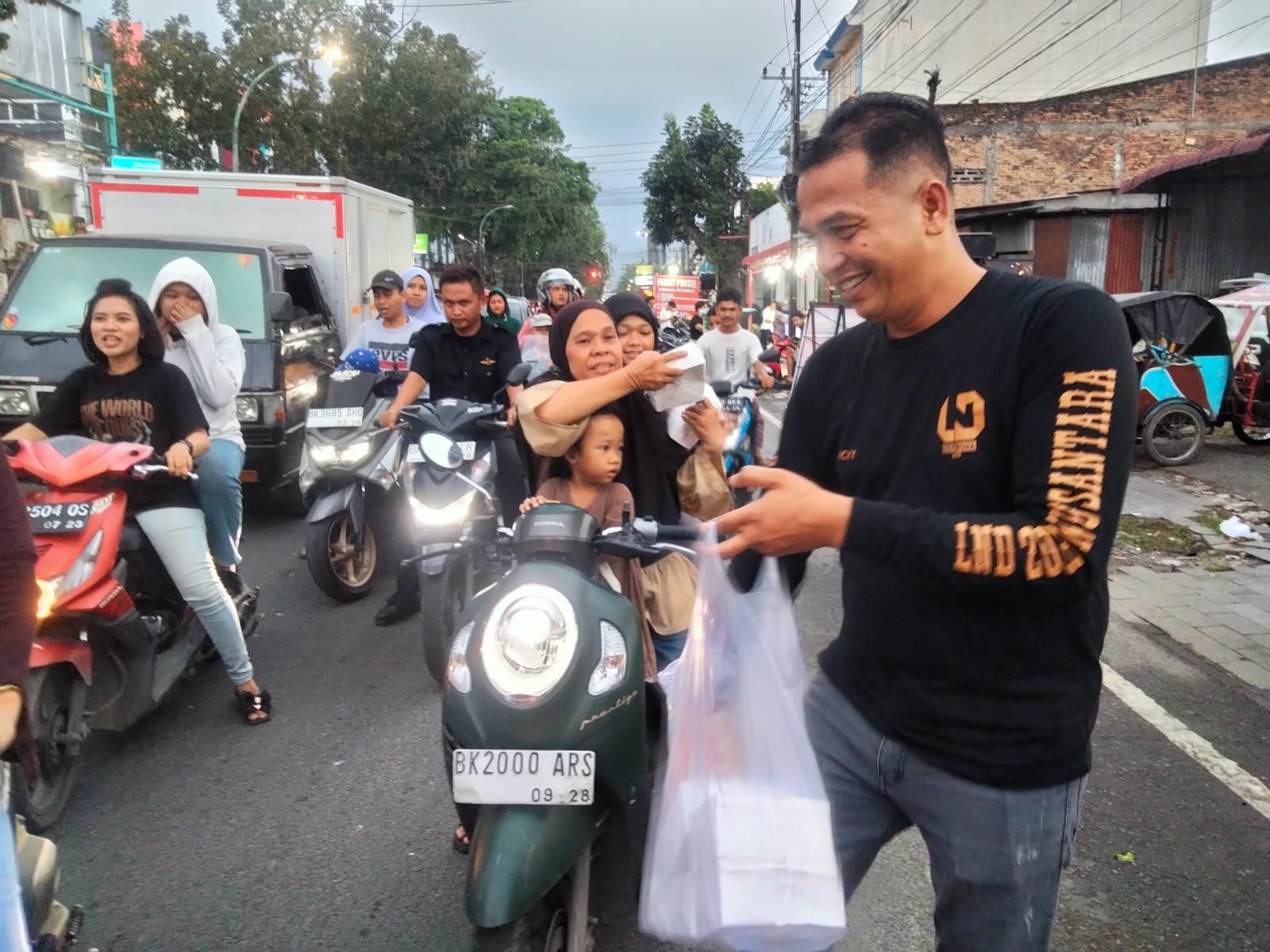 Alumni Diktukba Polri Angkatan 2008 Polda Sumut Bagikan Takjil Serta Sembako kepada Warga di Jalan HM Joni Medan