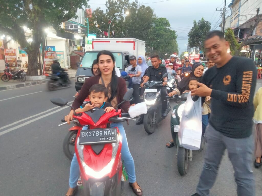Alumni Diktukba Polri Angkatan 2008 Polda Sumut bergerak cepat dalam wujud kepeduliannya kepada masyarakat. Kali ini petugas kepolisian Angkatan 2008 Polda Sumut, membagikan takjil, dan sembako kepada warga yang ada di Jalan HM Joni Medan, Kamis (27/3/2025) sore.