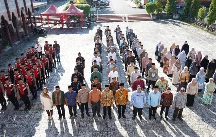 Medan: NoktahsumutcomKetua Panitia Penyelenggara Ibadah Haji (PPIH) 1446H/2025M Embarkasi Medan H. Ahmad Qosbi, S.Ag, MM memimpin Apel Pagi persiapan kedatangan jemaah calon haji Kloter I di Asrama Haji Medan, Kamis (1/5). Apel pagi diikuti seluruh petugas PPIH dan PPPIH.