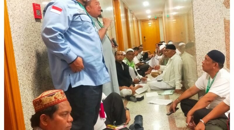 Medan noktahsumut com Wakil Presiden RI Gibran Rakabuming Raka menyapa jemaah haji Kelompok Terbang (Kloter) 12 di Aula 1 Madinatul