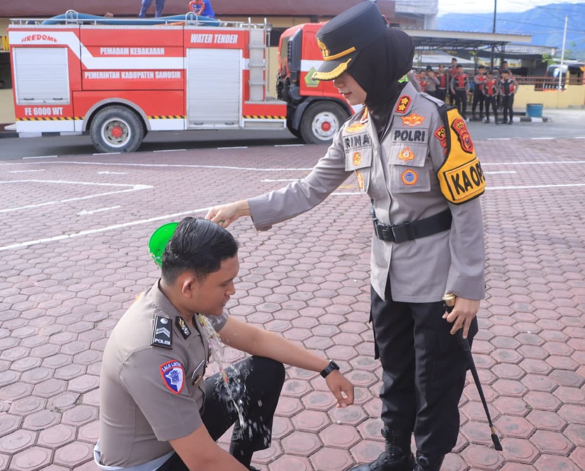 Upacara Korp Raport Kenaikan Pangkat berakhir pada pukul 08.45 WIB dalam keadaan aman dan kondusif. Kegiatan kemudian dilanjutkan dengan prosesi penyiraman bunga kepada personel yang naik pangkat oleh Kapolres Samosir AKBP Rina Frillya, S.I.K, didampingi para Pejabat Utama Polres Samosir, serta penyiraman air menggunakan satu unit mobil Damkar Kabupaten Samosir.
