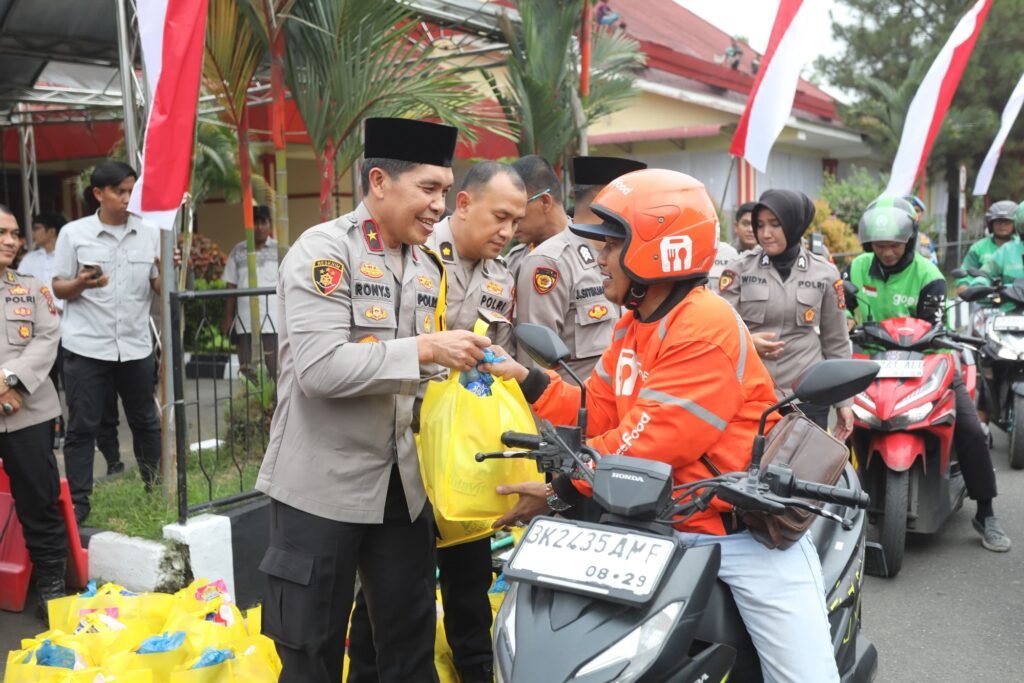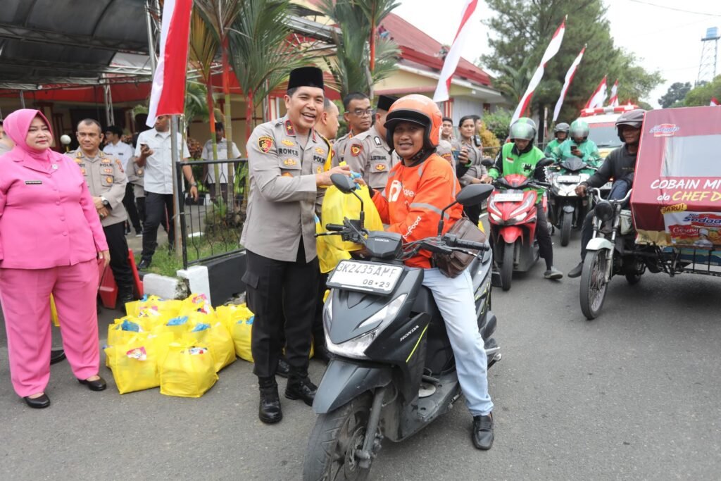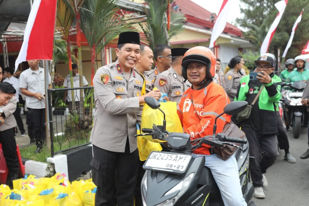 Ratusan paket bantuan dibagikan kepada masyarakat yang hadir, termasuk kepada komunitas pengemudi ojek online (ojol) di Sumatera Utara. Perwakilan dari keluarga besar ojol Sumut mengucapkan terima kasih kepada Kapolda Sumut beserta seluruh jajaran Polda Sumut atas perhatian dan kepeduliannya.