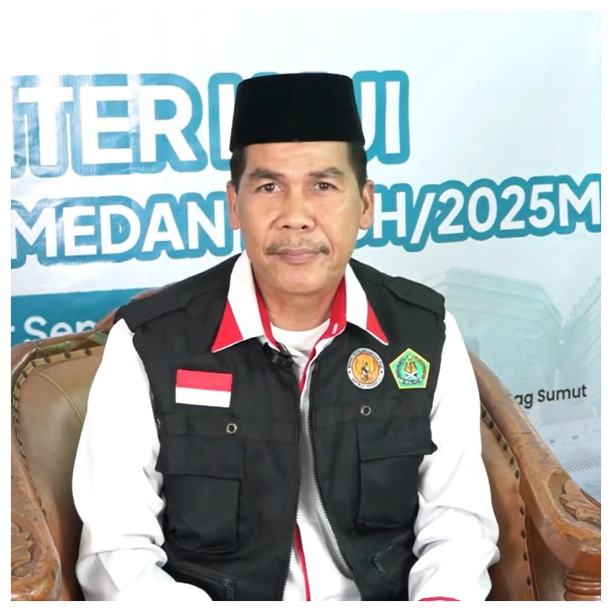 Bimbingan Ibadah dan Konsultasi PPIH Embarkasi Medan H. Kamaluddin Siregar, MA saat menjadi narasumber pada Podcast Media Center Haji (MCH) Embarkasi Medan, Senin (12/5/2025).