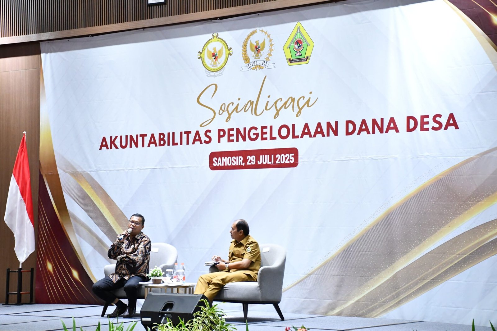 Badan Pemeriksa Keuangan (BPK) RI bersama Komisi XI DPR RI bekerjasama dengan Pemerintah Kabupaten (Pemkab) Samosir menggelar sosialisasi Akuntabilitas Pengelolaan Dana Desa di Grand Ballroom Labersa Hotel & Convention, Desa Simarmata, Simanindo, Kabupaten Samosir.