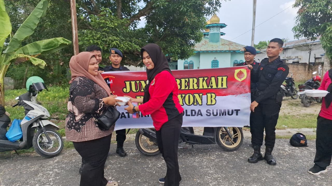 Brimob Polda Sumut dan Bhayangkari Tebar Kepedulian, Gelar Jum’at Berkah Berbagi Makan Siang di Kampung Wetan Tanjung Balai