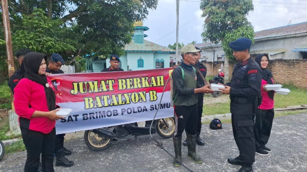 Suasana penuh kehangatan dan kebersamaan terlihat mewarnai kegiatan Jum’at Berkah yang digelar oleh Personel Kompi 3 Batalyon B Satuan Brimob Polda Sumut bersama Bhayangkari. Kegiatan sosial ini dilaksanakan di Kampung Wetan, Kelurahan Sei Raja, Kecamatan Sei Tualang Raso, Kota Tanjung Balai, Jumat (19/09/2025) siang.