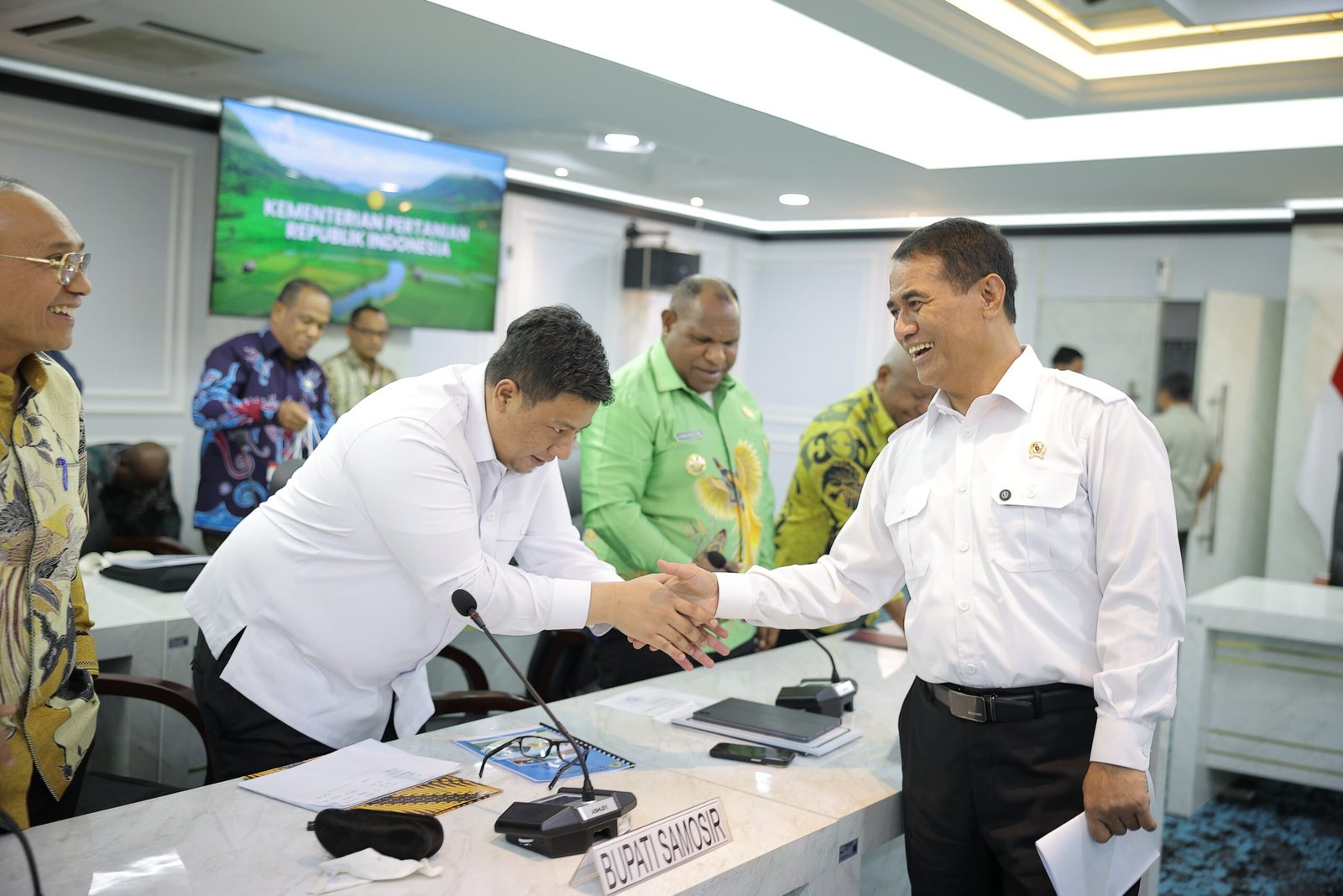 Bupati, Vandiko T Gultom, bertemu dengan Menteri Pertanian Andi Amran Sulaiman di Kementerian Pertanian. Pada pertemuan itu Pemerintah Kabupaten (Pemkab) Samosir dapat dukungan dari Kementerian Pertanian (Kementan) untuk pengembangan komoditas kopi seluas 1.900 hektare dan kakao seluas 500 hektare.