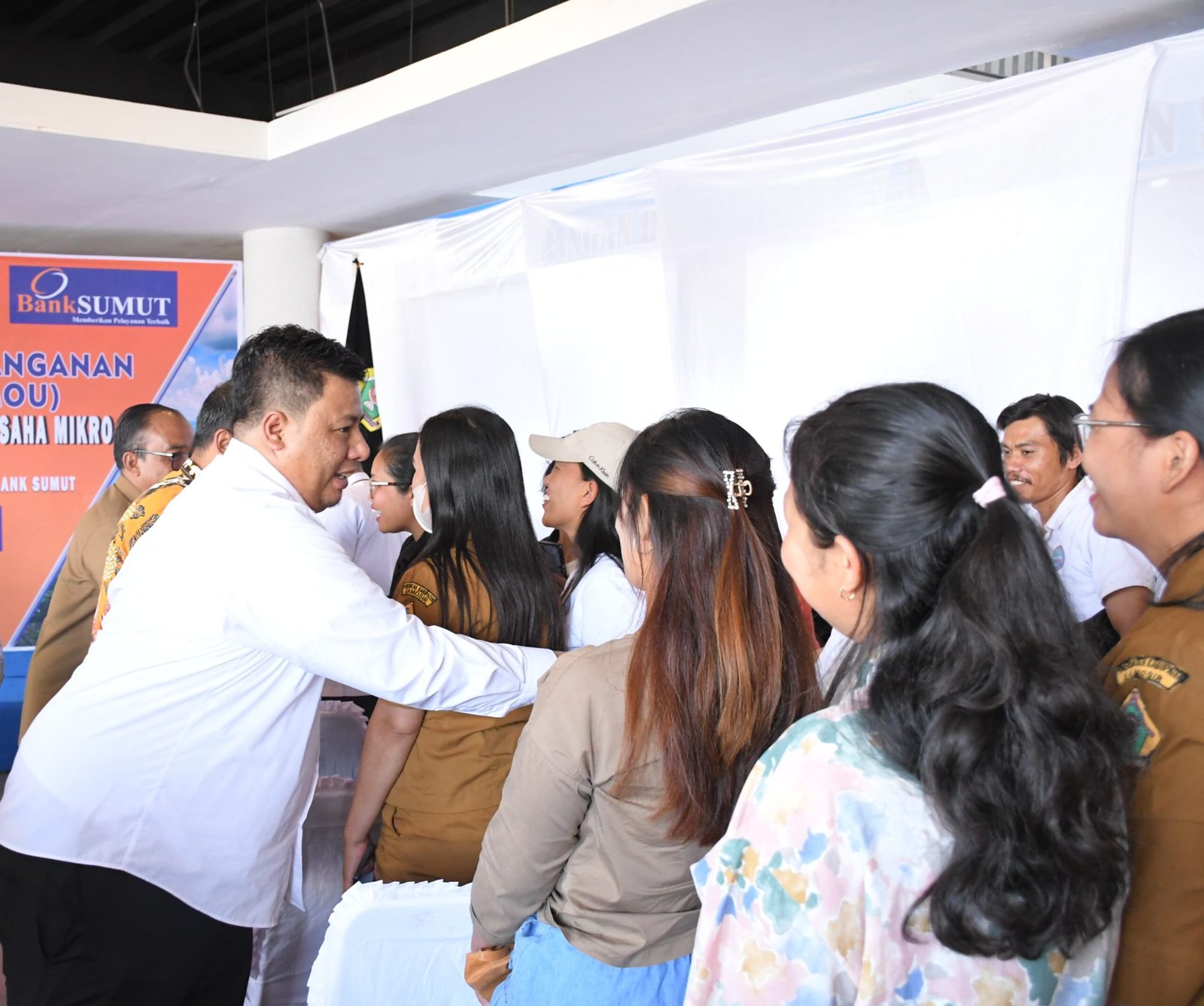 Guna mendukung kualitas serta kuantitas produk UMKM, Bupati Vandiko T Gultom melakukan penandatanganan MoU program subsidi bunga pinjaman kepada pelaku UMKM usaha Mikro dengan PT. Bank Sumut di halaman Waterfront City, Kecamatan Pangururan.