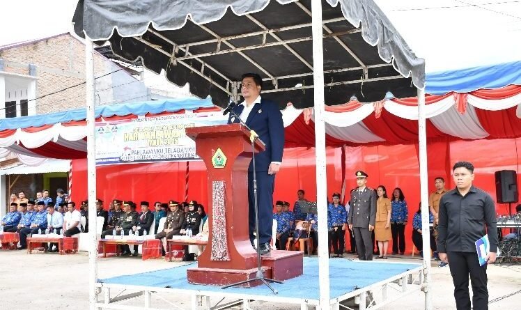 Bupati Samosir Vandiko T. Gultom bertindak sebagai inspektur upacara pada kegiatan yang digelar di Tanah Lapang Pangururan.