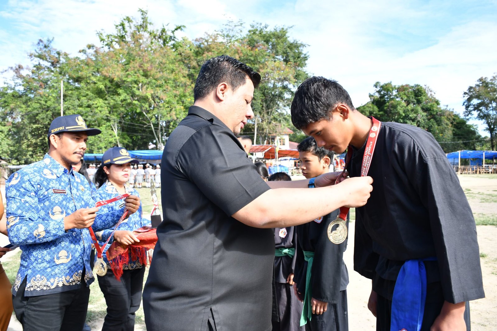 Disela-sela acara, Bupati memberikan penghargaan kepada atlit-alit muda yang berhasil mengharumkan nama Samosir, serta uang pembinaan kepada para atlet peraih medali emas di tingkat internasional, nasional, dan kabupaten dari Cabang Ikatan Pencak Silat Indonesia (IPSI) yang mewakili KONI dan dari Kormi, Selasa (28/10/2025)
