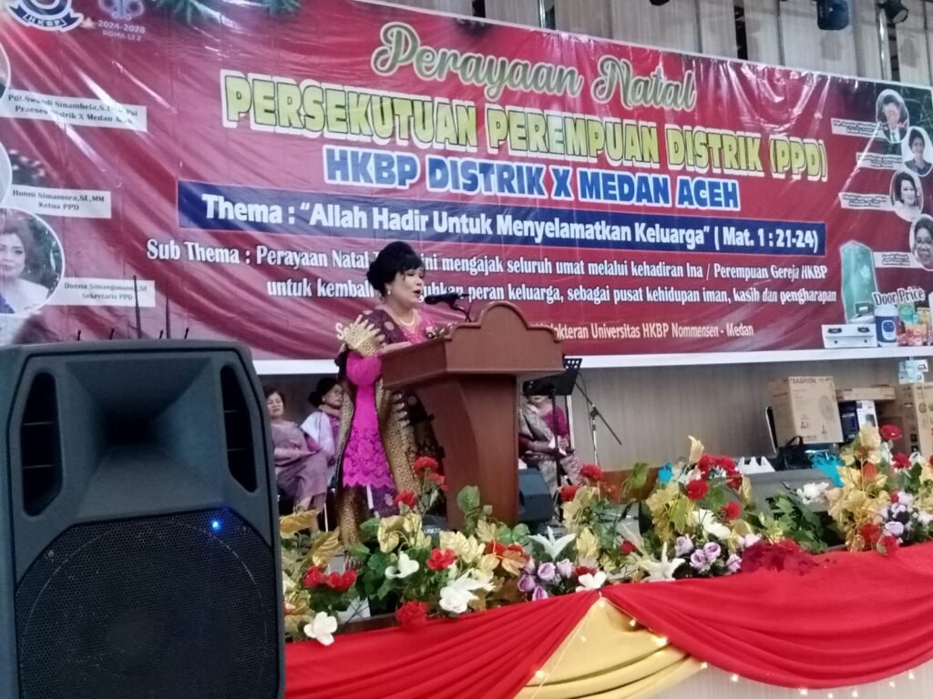 Perayaan Natal Persekutuan Parompuan Distrik (PPD) HKBP Distrik X Medan Aceh, berlangsung meriah dan penuh sukacita, pada Selasa, 2 Desember 2025 di Gedung Aula Fakultas Kedokteran Universitas HKBP NOMENSEN MEDAN dimulai sejak pukul 16.00 Wib sampai dengan selesai.