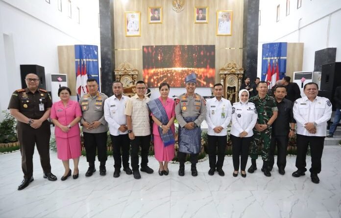 Kehadiran Kapolda disambut langsung oleh Bupati Labuhanbatu dr. Maya Hasmita, bersama Forkopimda dari Kabupaten Labuhanbatu dan Labuhanbatu Utara. Suasana kebersamaan tampak hangat dalam jamuan makan siang, yang dilanjutkan dengan penyerahan cinderamata serta pemasangan ulos sebagai bentuk penghormatan adat kepada Kapolda Sumut dan Ketua Bhayangkari Sumut.