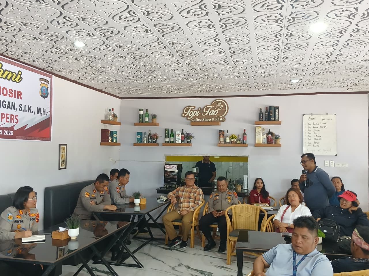 Silaturahmi untuk mewujudkan kerjasama dengan para media dalam menjaga kenyamanan masyarakat Samosir melalui pemberitaan yang berimbang serta tidak memberitakan HOAKS kepada masayarakat Samosir. Kegiatan tersebut dilaksanakan pada Kamis (19/2/2026) bertempat Topi Tao Caffe, Pangururan.