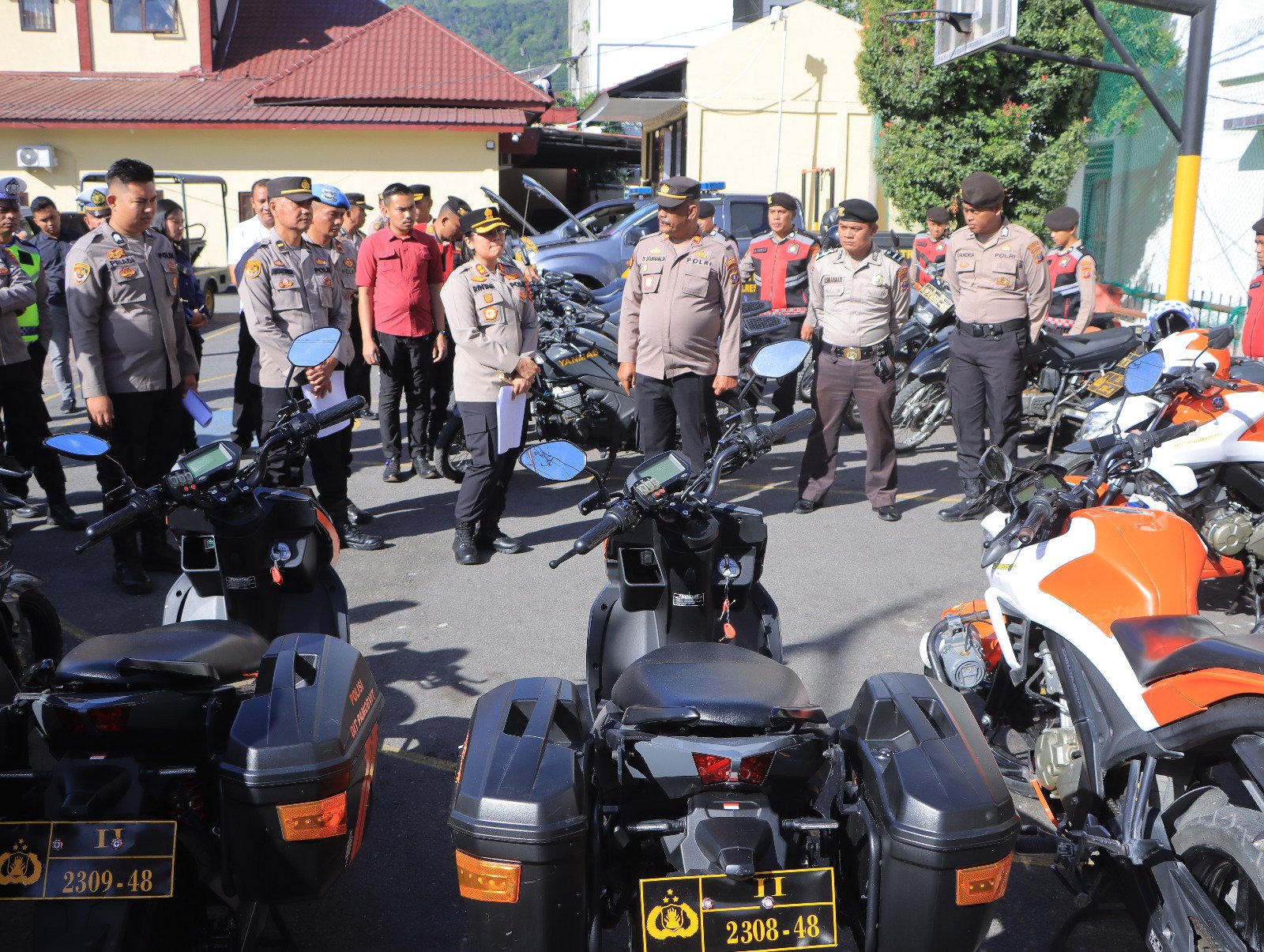 Kapolres Samosir, AKBP Rina Sry Nirwana, S.I.K., melakukan pengecekan kendaraan dinas operasional dan senjata api (senpi) jajaran Polres guna memastikan kesiapan sarana prasarana untuk mendukung pelaksanaan tugas kepolisian.
