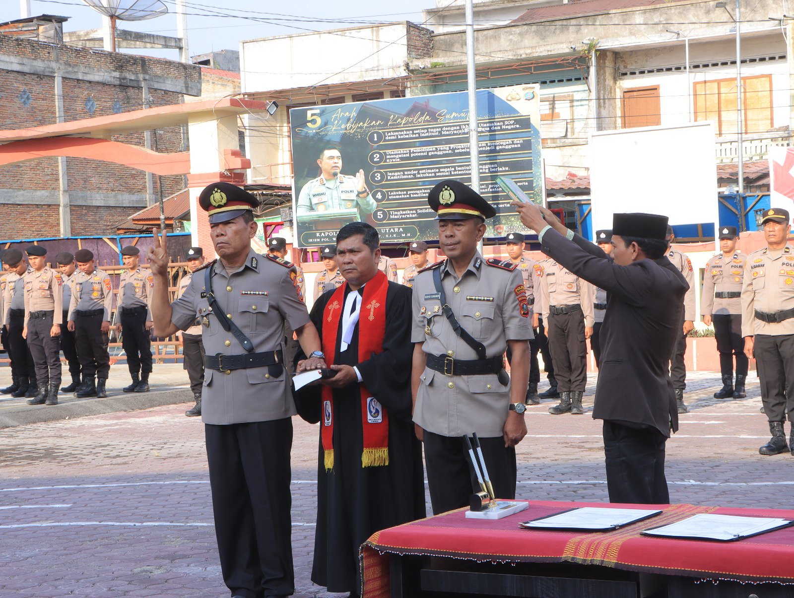Acara yang diikuti jajaran Pejabat Utama (PJU), jajaran Kapolsek, perwira dan bintara Polres Samosir, Bhayangkari Cabang Samosir, serta rohaniawan.