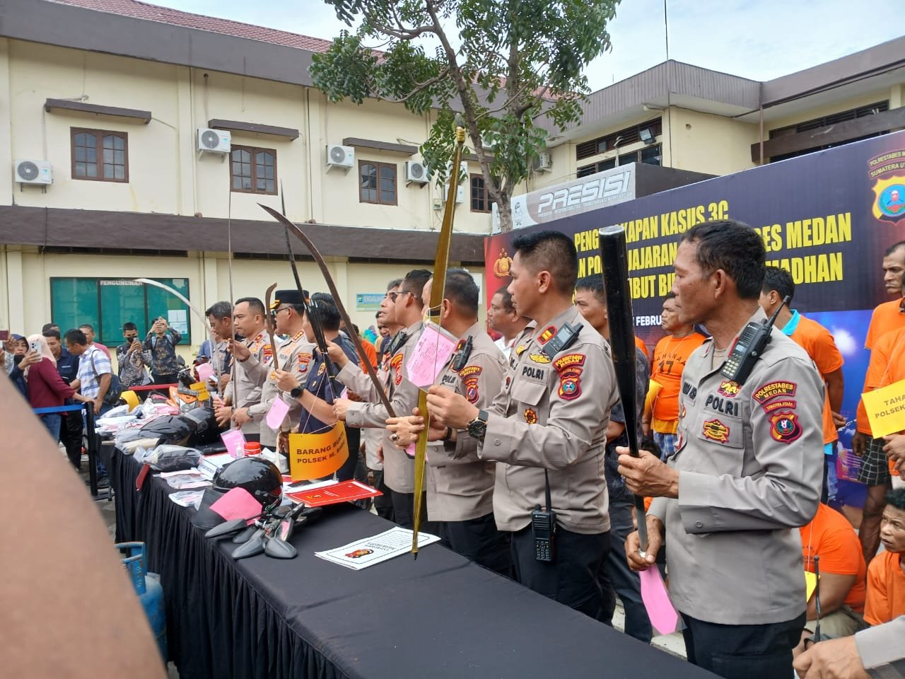 Kapolrestabes Medan,Noktahsumutcom Kombes Pol Gidion Arif Setiawan SIK MH, tidak ada tempat bagi pelaku kejahatan di di wilayah hukum (Wilkum) Polrestabes Medan dan juga seluruh Polsek jajarannya, hal ini ditegsskan Kapolrestabes Medan, saat mengelar paparan kasus 3C (Curat, Curas dan Curanmor) aksi begal dan geng motor (Gemot) bertempat di halaman Mapolrestabes Medan, Jalan H.M Said No.1 Medan, Kamis (27/2/2025) sekira pukul 15.00 Wib.