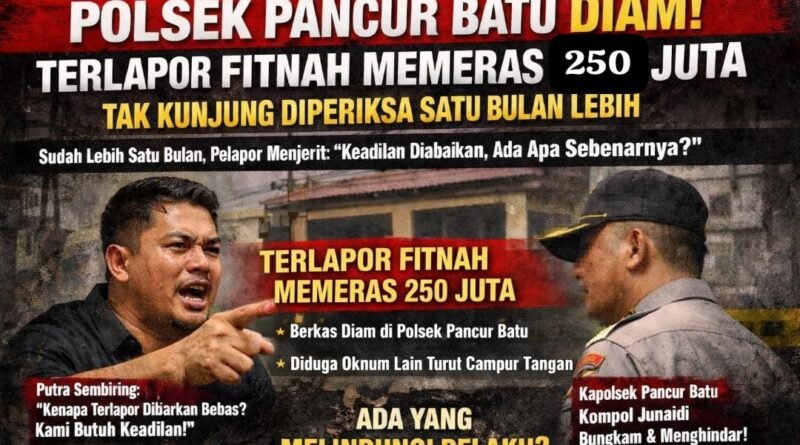 Sudah lebih satu bulan lamanya mengeram, terlapor kasus dugaan Fitnah sadis memeras 250 juta terhadap korban pencurian yang dijadikan tersangka tidak kunjung diproses oleh Kapolsek Pancur Batu dan anggotanya, padahal laporan tersebut merupakan limpahan dari