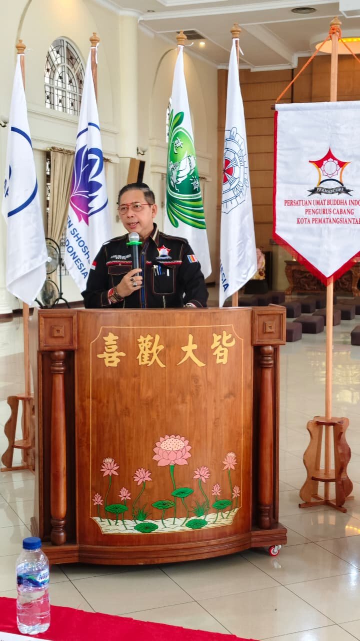 ​Sementara itu, Ketua Permabudhi Sumut, Drs. Wong Chun Sen Tarigan, M.Pd.B., dalam sambutannya menyampaikan harapannya agar PC Permabudhi Pematangsiantar dapat lebih bersinergi dan kompak. Ia menekankan pentingnya melahirkan kader-kader berpotensi sebagai generasi penerus umat Buddha dalam berorganisasi, mengingat banyak anggota yang memiliki kesibukan bisnis.