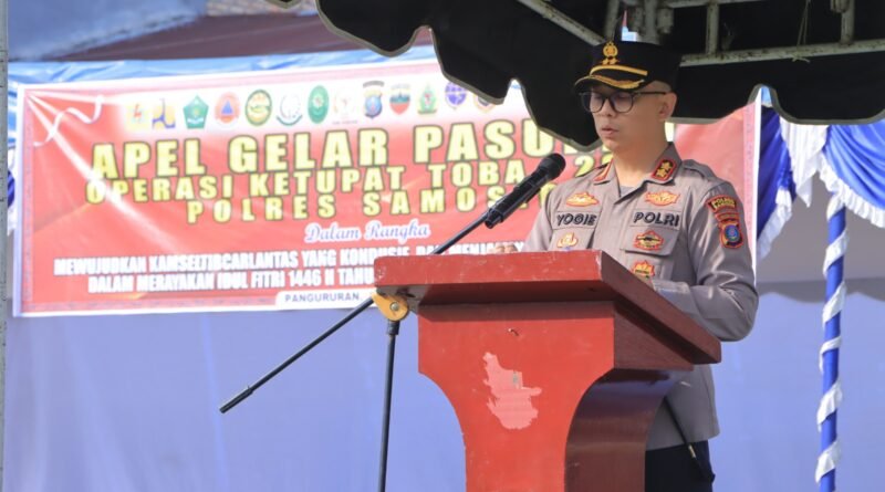 Menjelang pelaksanaan Operasi Ketupat Toba 2025, Polres Samosir menggelar Apel Gelar Pasukan di Tanah Lapang, Pangururan, Kabupaten Samosir.