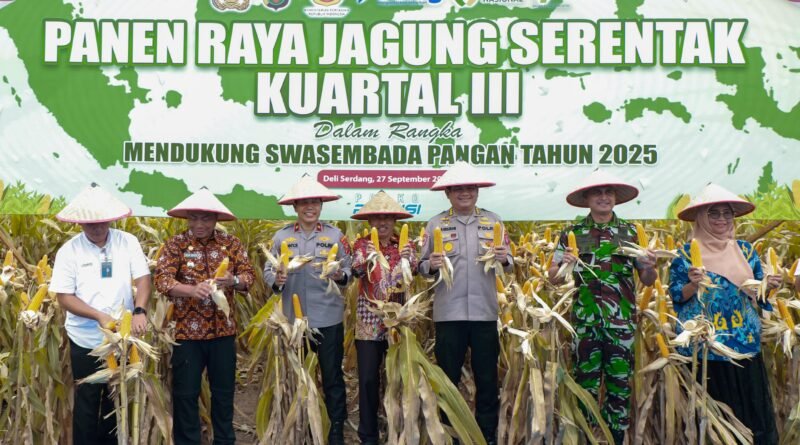 Deli Serdang – NoktahsumutcomWakapolda Sumut, Brigjen Pol. Rony Samtana, S.I.K., M.T.C.P., yang mewakili Kapolda Sumut hadir dalam kegiatan Panen Raya Jagung Serentak Kuartal III di Jalan Sultan Serdang, Desa Telaga Sari, Kabupaten Deli Serdang, Sabtu (27/9/2025).