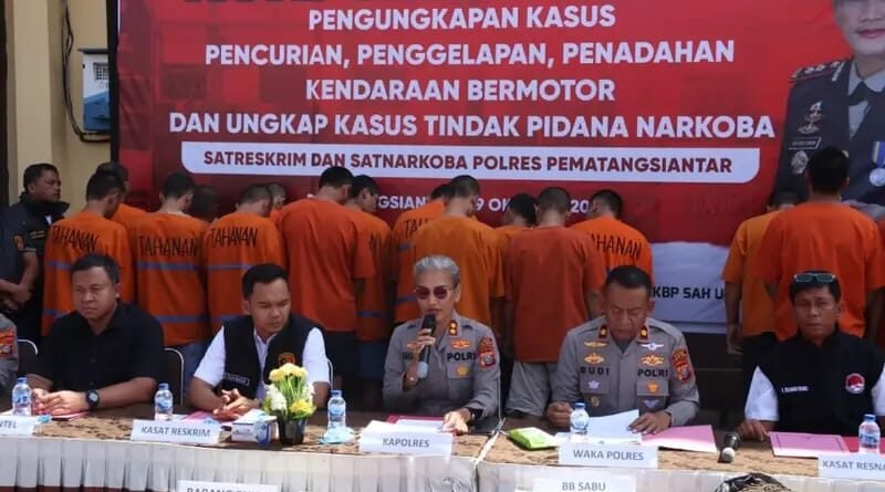 – PematangsiantrNoktahsumutcomBertempat di lapangan apel, Kapolres Pematangsiantar AKBP Sah Udur SH. SIK. MH pimpin Konferensi Pers keberhasilan pengungkapan Kasus Pencurian, Penggelapan, Penadahan Ranmor dan Narkotika, pada hari Rabu 29 Oktober 2025 pagi sekira pukul : 09.00 Wib.