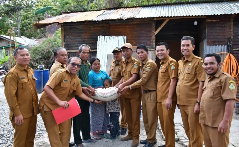 Bantuan diserahkan oleh Bupati Samosir melalui Asisten I Tunggul Sinaga kepada korban Meliana Pakpahan di Mogang, Desa Gorat Pallombuan.