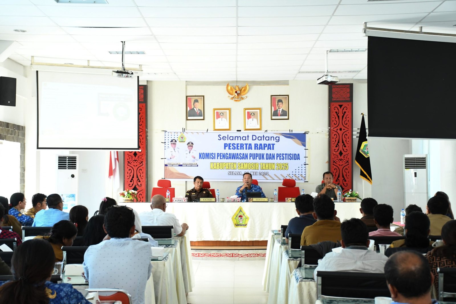 Turut hadir Kasintel Kajari Samosir, Kanit Tipidter Polres Samosir Martin Aritonang, distributor pupuk bersubsidi CV. Jo Parlambasan, CV. Warren Raja dan CV. Serenauli, kios pupuk se-Kabupaten Samosir, tim verifikasi dan validasi penyaluran pupuk bersubsidi.