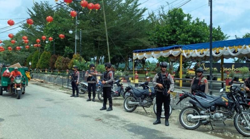 Noktahsumutcom Dalam rangka menciptakan rasa aman dan nyaman bagi masyarakat yang merayakan Hari Raya Imlek 2026, personel Kompi 4 Batalyon C Satuan Brimob Polda Sumatera Utara melaksanakan patroli Harkamtibmas di sejumlah titik strategis di Kota Gunungsitoli, Selasa (17/2/2026).