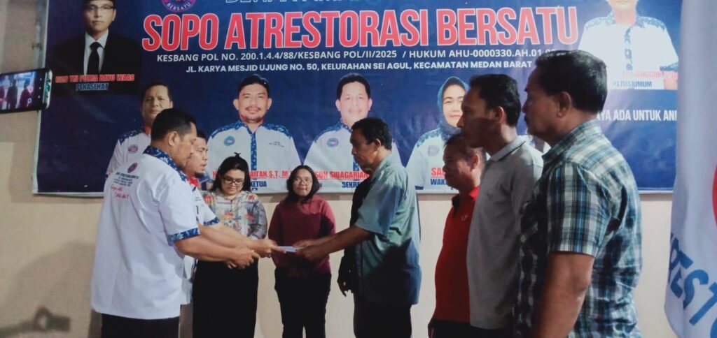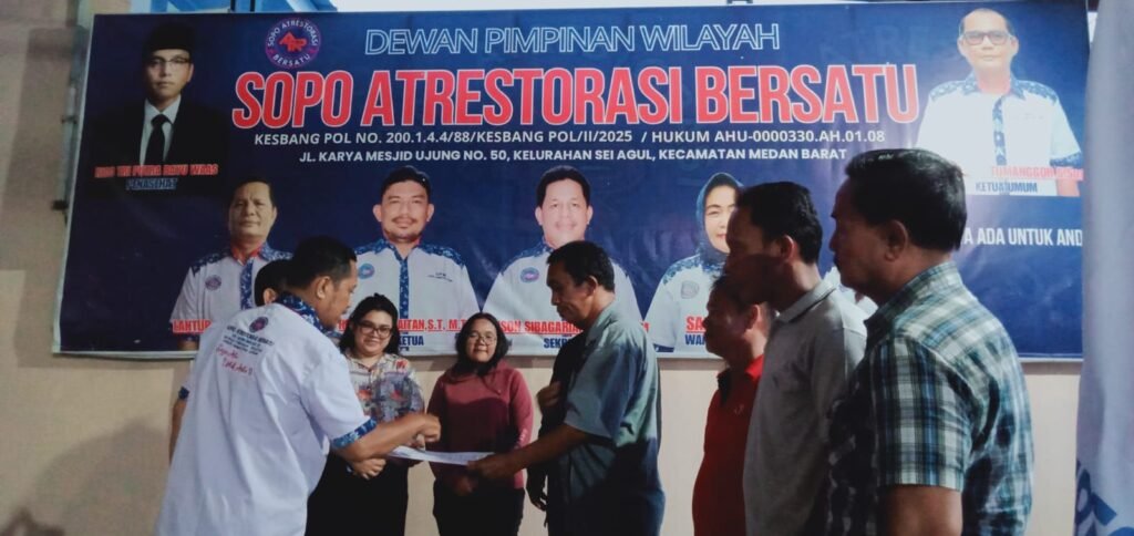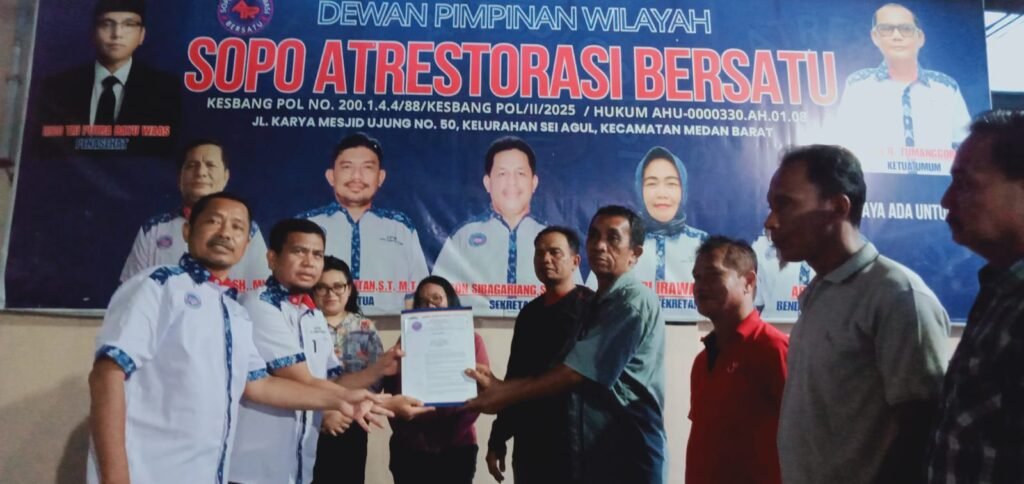 Dengan penuh rasa syukur dan semangat kebersamaan, Dewan Pimpinan Cabang (DPC) Sopo ATRestorasi Bersatu Kota Medan resmi menyerahkan Surat Keputusan (SK) Mandat kepada Pengurus Anak Cabang (PAC) Kecamatan Medan Petisah, di Kantor Sekretariat Jalan Mesjid no.50, Kel.Sei Agul, Kec.Medan Barat.