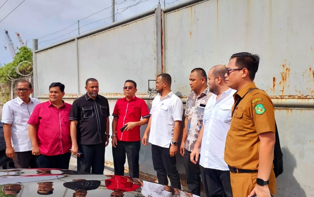 Noktahsumutcom ketua Komisi IV DPRD Medan Paul Mei Anton Simanjuntak (kiri keempat) bersama anggota Komisi IV lainnya tidak bisa masuk ke lokasi perusahaan karena digembok oleh pemiliknya