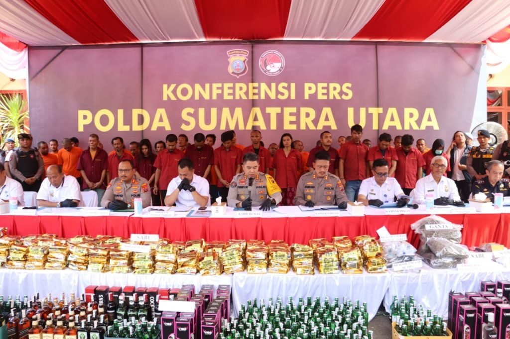 Polda Sumut, Polres Langkat dan Polres Binjai Gelar Konferensi Pers Ungkap 429 Kasus, Sita 206 Kg Sabu dan Puluhan Ribu Ekstasi