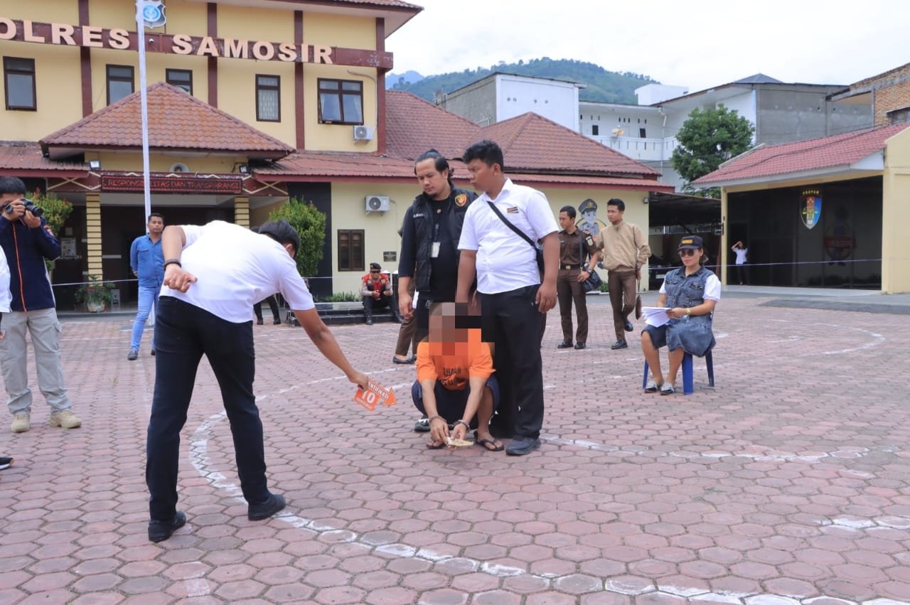 Rekonstruksi berlangsung di Lapangan Mako Polres Samosir, Jalan Danau Toba, Pangururan.