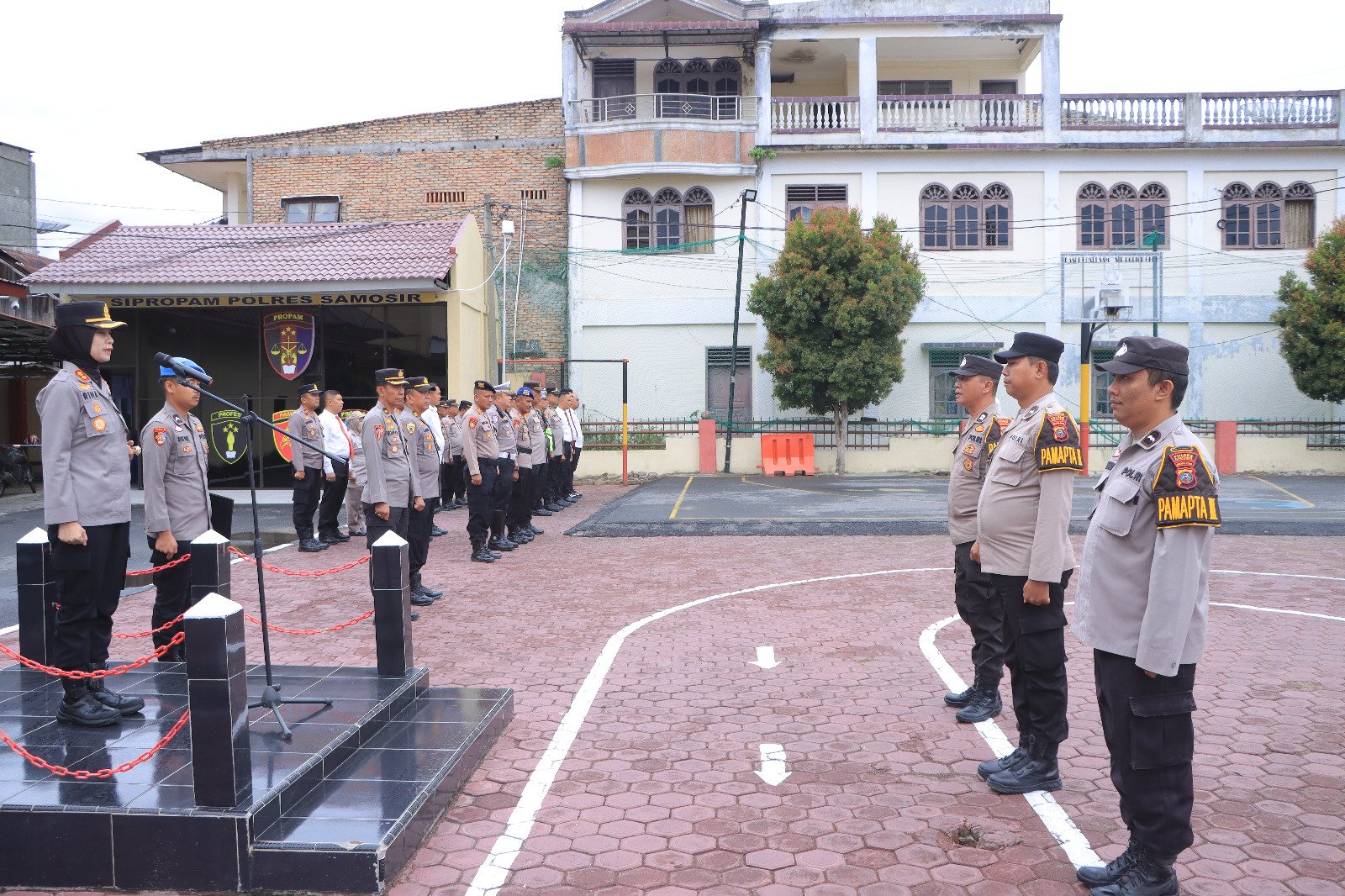 Kegiatan dipimpin langsung oleh Kapolres Samosir AKBP Rina Frillya, S.I.K., juga dihadiri para pejabat utama Polres, dan jajaran Kapolsek, Personel Polres, ASN, PHL, serta perwakilan personel yang dikukuhkan sebagai Pamapta.
