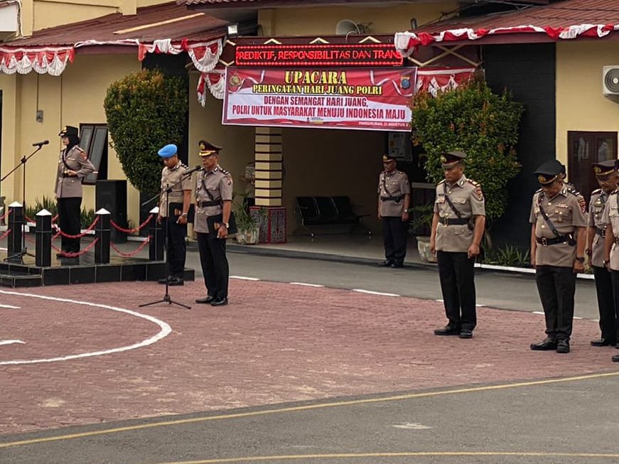 Polres Samosir menggelar Upacara Peringatan Hari Juang Polri di lapangan Mako Polres Samosir yang