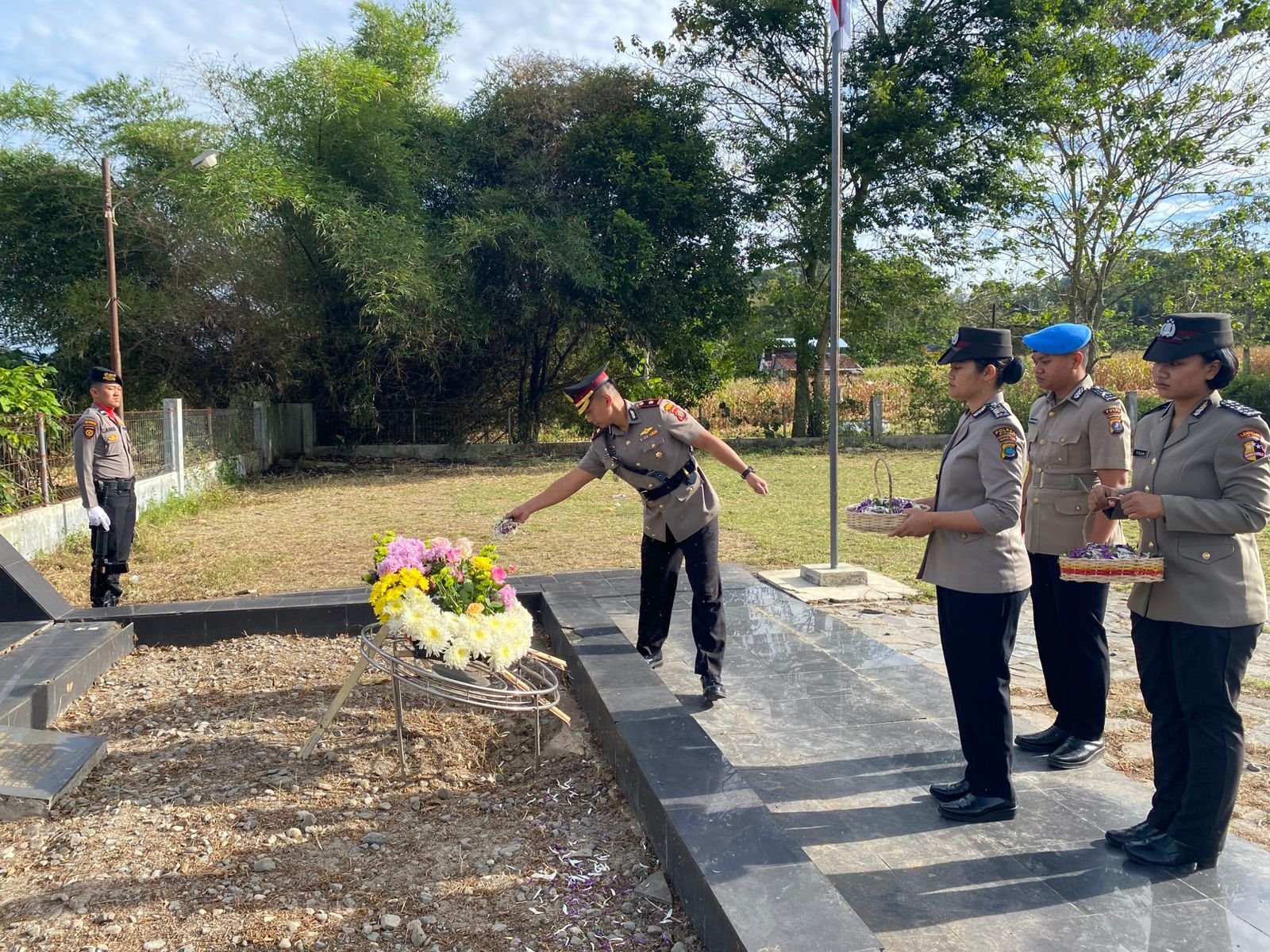 Selanjutnya dilanjutkan Gelar Upacara Ziarah dan Tabur Bunga di Makam Pahlawan Sidamdam Peringati Hari Bhayangkara ke-79, Senin (23/6/2025)