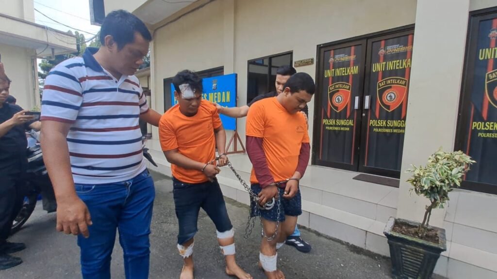 Medan – Noktahsumutcom Unit reskrim Polsek Sunggal tangkap 2 pelaku tindak pidana pencurian dengan kekerasan. Kedua pelaku adalah MAF (23) dan MIP (23) merupakan residivis kasus yang sama.