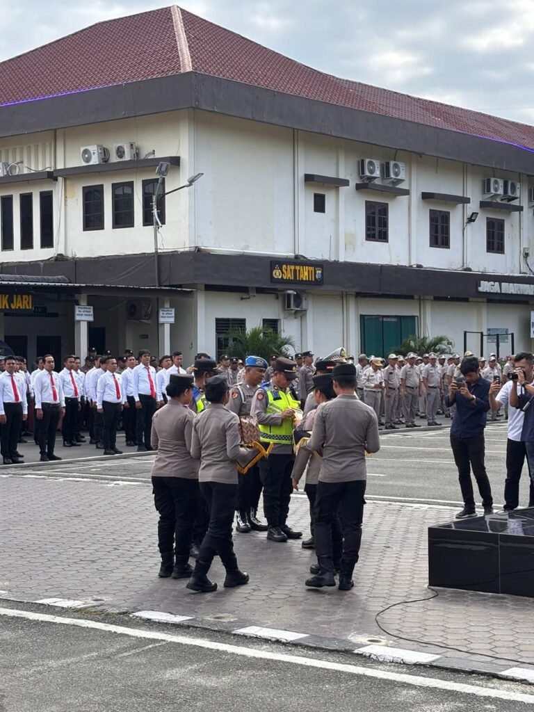 Acara penyerahan penghargaan dihadiri oleh seluruh pejabat dan personel Polrestabes Medan, berlangsung khidmat dan penuh kebanggaan atas prestasi yang telah diraih.