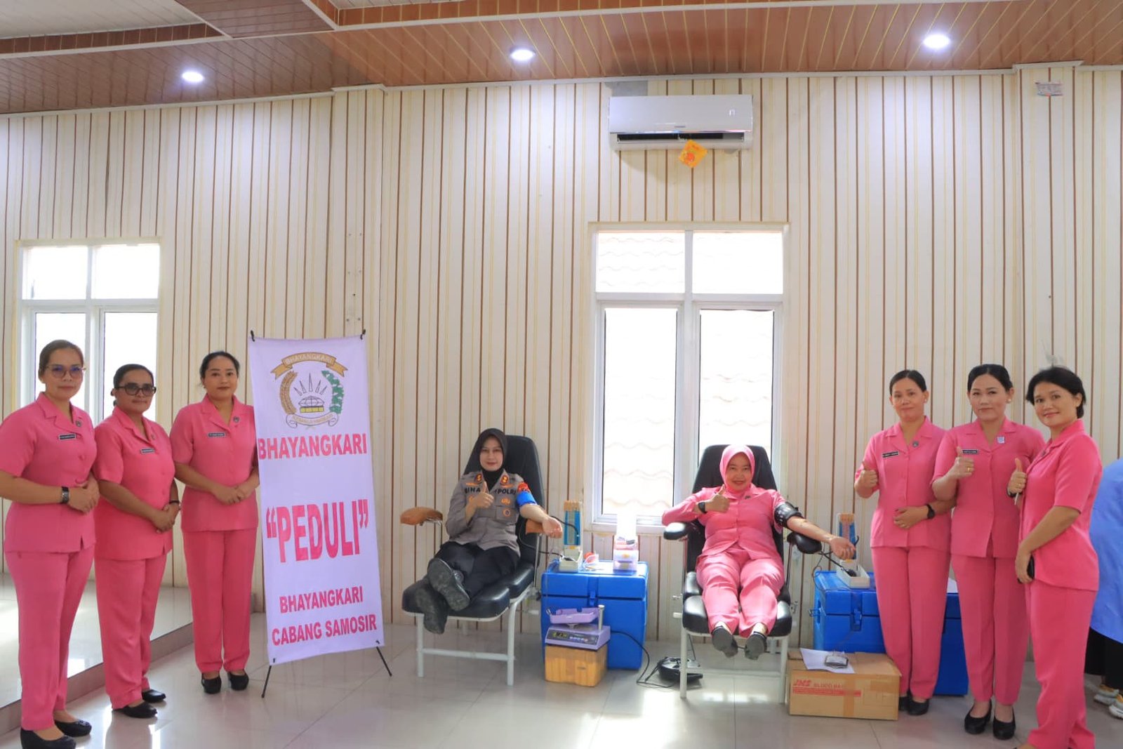 Kegiatan yang dipimpin oleh Kapolres Samosir, AKBP Rina Frillya, S.I.K., dan dihadiri Ketua PMI, personel Koramil 03 Pangururan, petugas Unit Transfusi Darah RSUD Hadrianus Sinaga, serta anggota Bhayangkari.