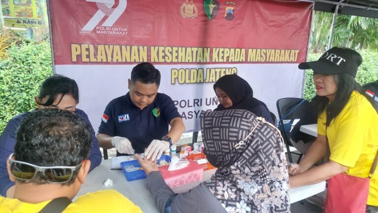 NoktahsumutcomKota Semarang – Dalam rangka menyambut Hari Bhayangkara ke-79, Biddokkes Polda Jawa Tengah menggelar kegiatan Bakti Kesehatan di arena Car Free Day (CFD) Simpang Lima Semarang, Minggu pagi (22/6/2025). Kegiatan ini merupakan bagian dari komitmen Polri untuk hadir langsung memberikan pelayanan kesehatan kepada masyarakat luas secara gratis dan humanis.