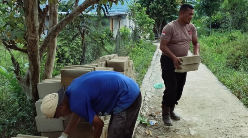 Tapanuli Selatan —Noktahsumutcom Kepedulian terhadap warga terdampak bencana kembali ditunjukkan oleh Sat Brimob Polda Sumut melalui keterlibatan langsung dalam pembangunan rumah hunian tetap swadaya masyarakat di Desa
