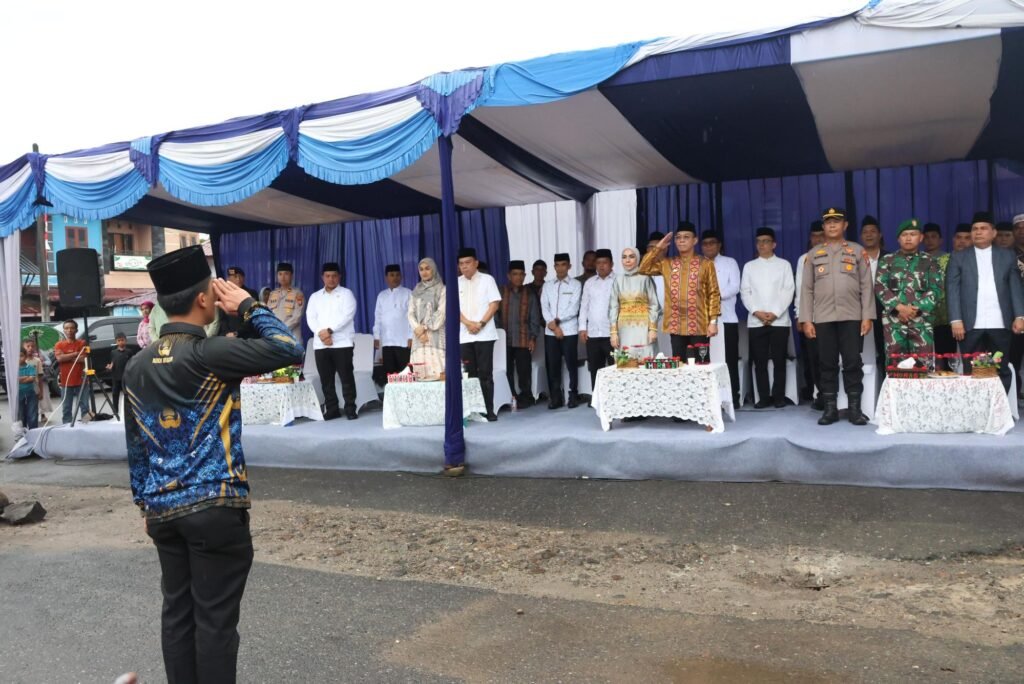 Barisan pawai dilepas Sekda Tapsel Sopyan Adil dari depan Mapolsek Sipagimbar, menuju mimbar penghormatan di depan Pasar Sipagimbar.