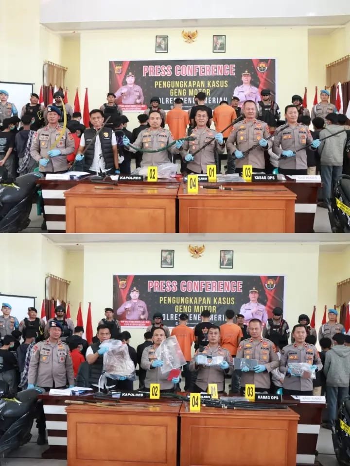 Tindak Tegas Geng Motor, Polres Bener Meriah Amankan Senjata Tajam dan Puluhan AnggotaBENER MERIAH – Kepolisian Resor Bener Meriah menggelar konferensi pers terkait pengungkapan kasus kekerasan terhadap anak serta penindakan terhadap aktivitas geng motor yang melibatkan sejumlah remaja di wilayah Kabupaten Bener Meriah. Kamis (8/5/2025).