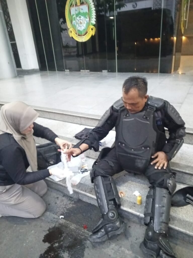 Selain itu, dari Polrestabes Medan tercatat Ipda Hesti Hutajulu (jatuh ke arah ban terbakar), Brigadir Anwar (luka di dengkul akibat lemparan batu), serta Bripda Daniel Silitonga (luka di pipi terkena bambu).