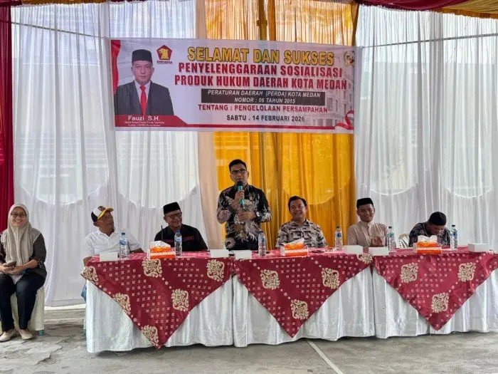 Narkoba dan keamanan menjadi keluhan yang disampaikan warga saat hadir dalam Sosper Nomor: 6 Tahun 2015 tentang Pengelolaan Sampah yang digelar Wakil Ketua Fraksi Gerindra DPRD Kota Medan, Fauzi, di Gang Persatuan, Jalan Gedung Arca, Kecamatan Medan Area, Kota Medan, Sabtu (14/2/2026).